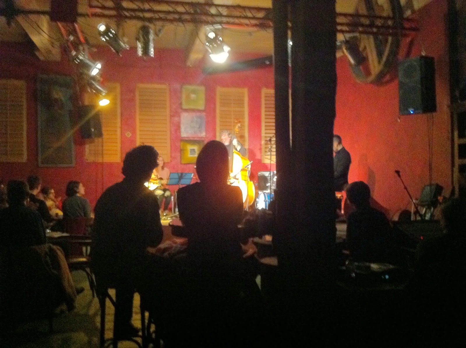 The concert closed with an extended trio; Houle invited tenor saxophonist Nils Berg to come up, and they offered a ten-or-more minute extemporaneous tone poem, with Berg’s contributions recalling the restrained lyricism of late Lester Young, or perhaps even Warne Marsh in a reflective mood. Beautiful things: bright moments, as Rahsaan might have put it. Here is Taylor’s field recording of the trio, so you can hear it for yourself.